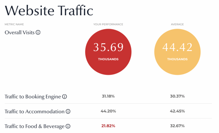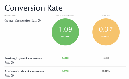 Most hoteliers want to know exactly how many of their website visitors are actually booking direct. We can tell you that the industry average is between 1.7% and 2%, but when you’re part of the benchmarking community you can compare your hotel conversion rate with lots of other hotels in your competitor set.